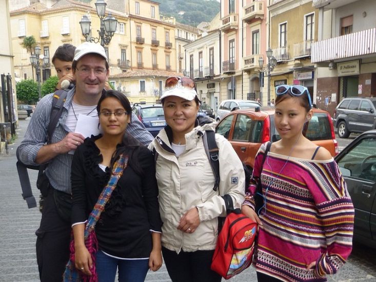 Nach der Landung unseres Fliegers am späten Vormittag in Nicastro in Kalabrien, starten wir sofort mit unserer Wanderung zum Bergdorf Serrastreta. Mit von der Partie sind auch unsere Kinder Tobi und Begimaj, sowie unsere Freundin Parina aus Nepal.
