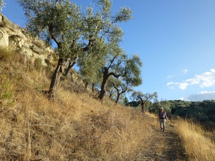 Unsere Kräfte neigen sich schon dem Ende zu, als wir die Wildnis verlassen und auf eine kleine Provinzstrasse treffen. Die letzten Kilometer wandern wir auf Asphalt durch kleine Dörfer, bergab durch endlose Olivenhaine und erreichen endlich die Küstenebene.