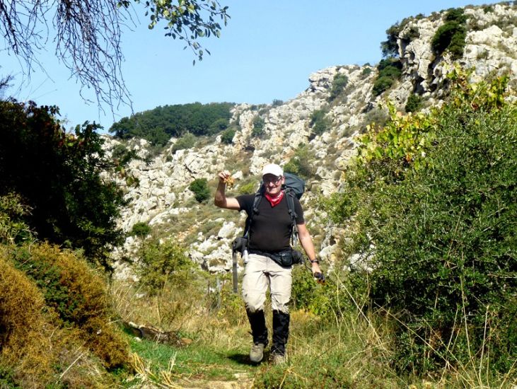 Erst im darauffolgendem Katsidoni, welchen wir kurz vor Sonnenuntergang erreichen, erhalten wir ein Privatzimmer sowie ein Abendessen. Am nächsten Tag überqueren wir einen weiteren Sattel und folgen einem Schotterweg mit unzähligen Bienenkisten. In der Nähe des Dorfes Karidi entdecken wir einen Rebgarten voll mit reifen, süßen Trauben!