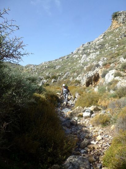 In Karidi angekommen, erkunden wir uns nach einem Weg in das nächste Dorf Vrisidi. Wir erfahren von einigen Bewohnern, dass kein Weg dorthin existiert und wandern weglos auf Ziegenpfaden und entlang eines ausgetrockneten Bachbettes. Diese Variante hat uns viel Kraft und Nerven abverlangt bis wir endlich Vrisidi erreichten.