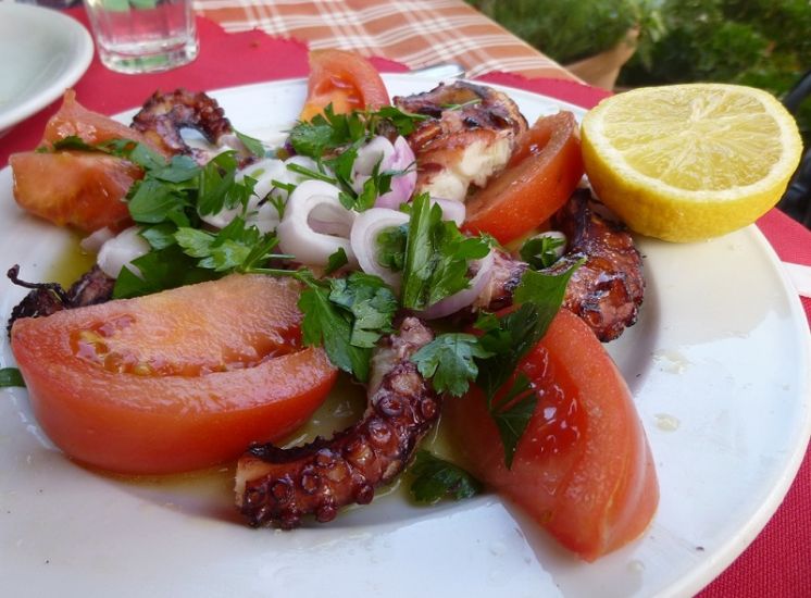 Nach einer Nacht im Bergdorf Kambos gelangen wir wieder an einen Küstenabschnitt. In der Nähe des Klosters Chrysoskalitissa rasten wir zur Mittagszeit in einer schönen Taverne. Von der gesamten Gastfamilie werden wir herzlich empfangen und mit einigen guten, kretischen Spezialitäten verwöhnt.