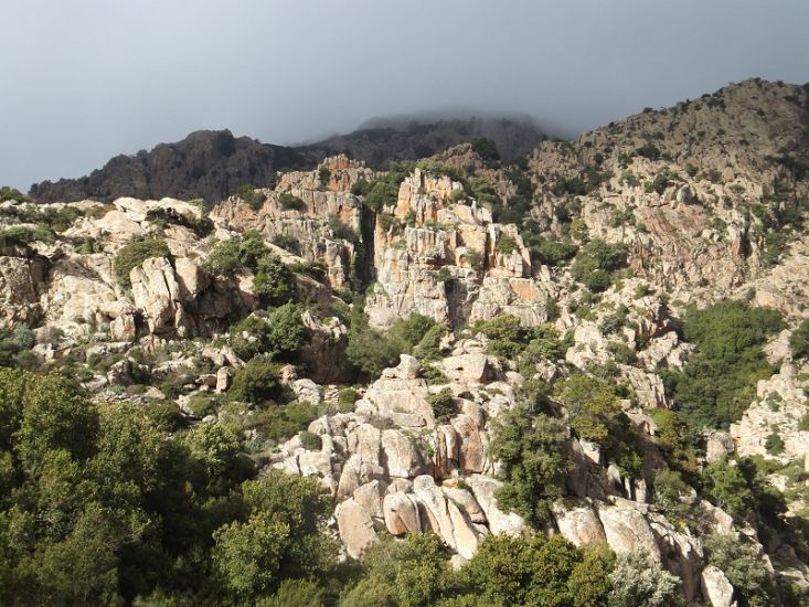 Während die Wolken den „Monte Genis“ überdecken, wandern wir bei Sonnenschein darunter hindurch. Allerdings müssen wir uns sehr beeilen, da sich die Wolkenfront rasch talwärts bewegt. Der Anblick dieser grandiosen Stimmung lässt unsere Herzen höher schlagen.