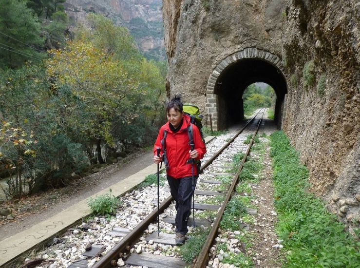 Unser Weg verläuft – so unheimlich das klingen mag – etwa 20 Kilometer direkt auf den Bahngleisen! Er führt uns durch stockdunkle Tunnelschächte, über luftige Brücken-Konstruktionen und vorbei an atemberaubenden Felsabbrüchen. Hinzu kommt, dass man den Fahrplan schon gut studieren muss, um einen Kontakt mit den Zügen an der falschen Stelle zu vermeiden…