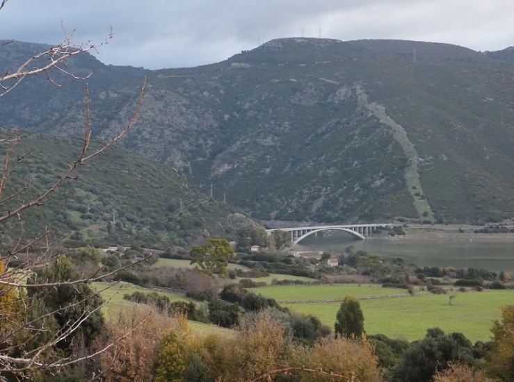Der Flumendosa mündet bei Villanovatulo in den Stausee Lago di Flumendosa, der von der Form an eine lange Bohne erinnert und im Osten von höheren Bergen eingerahmt ist. Da das Ufer für Wanderer eher unpassierbar ist, entschließen wir uns für einen Weg weiter westlich, auf der Hochebene durch Nurri und Orroli.